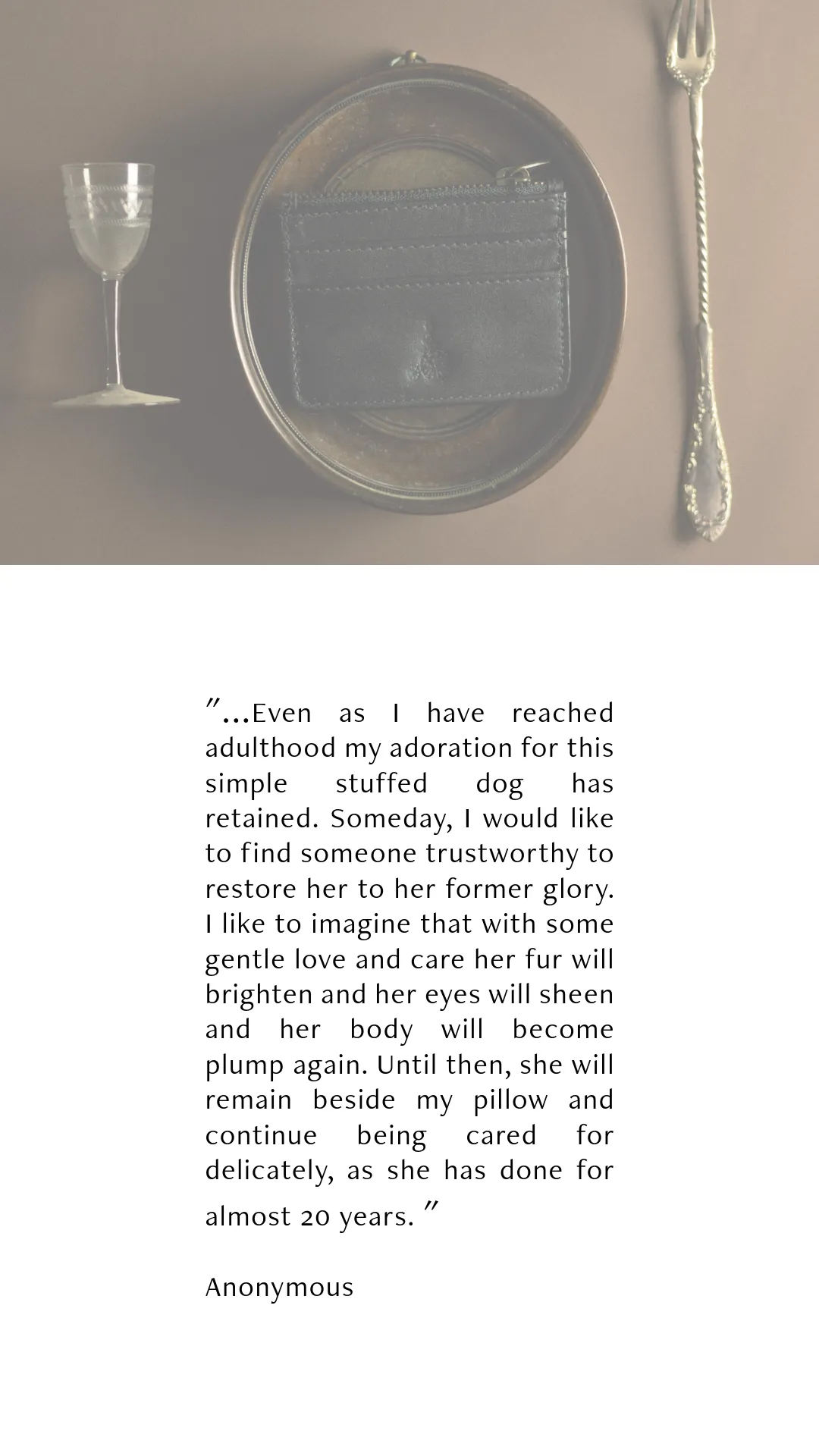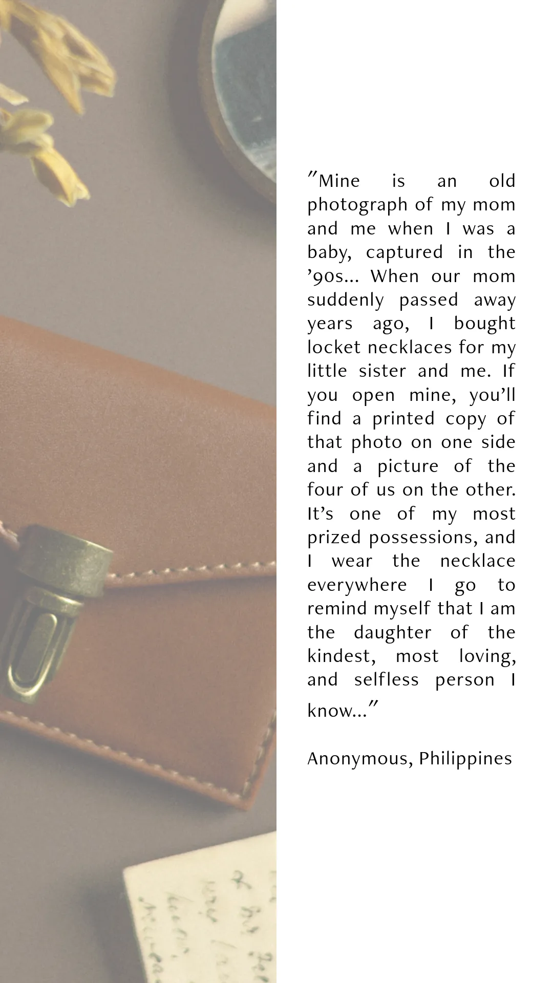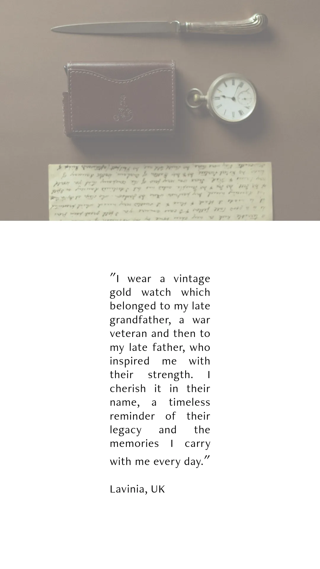 As a part of our recent giveaway we invited everyone to tell us a short story about something precious that accompanied them through life and why it's so special to them. Some were nostalgic, some deeply personal, and all are beautiful reminders of how meaningful the things we carry can be.