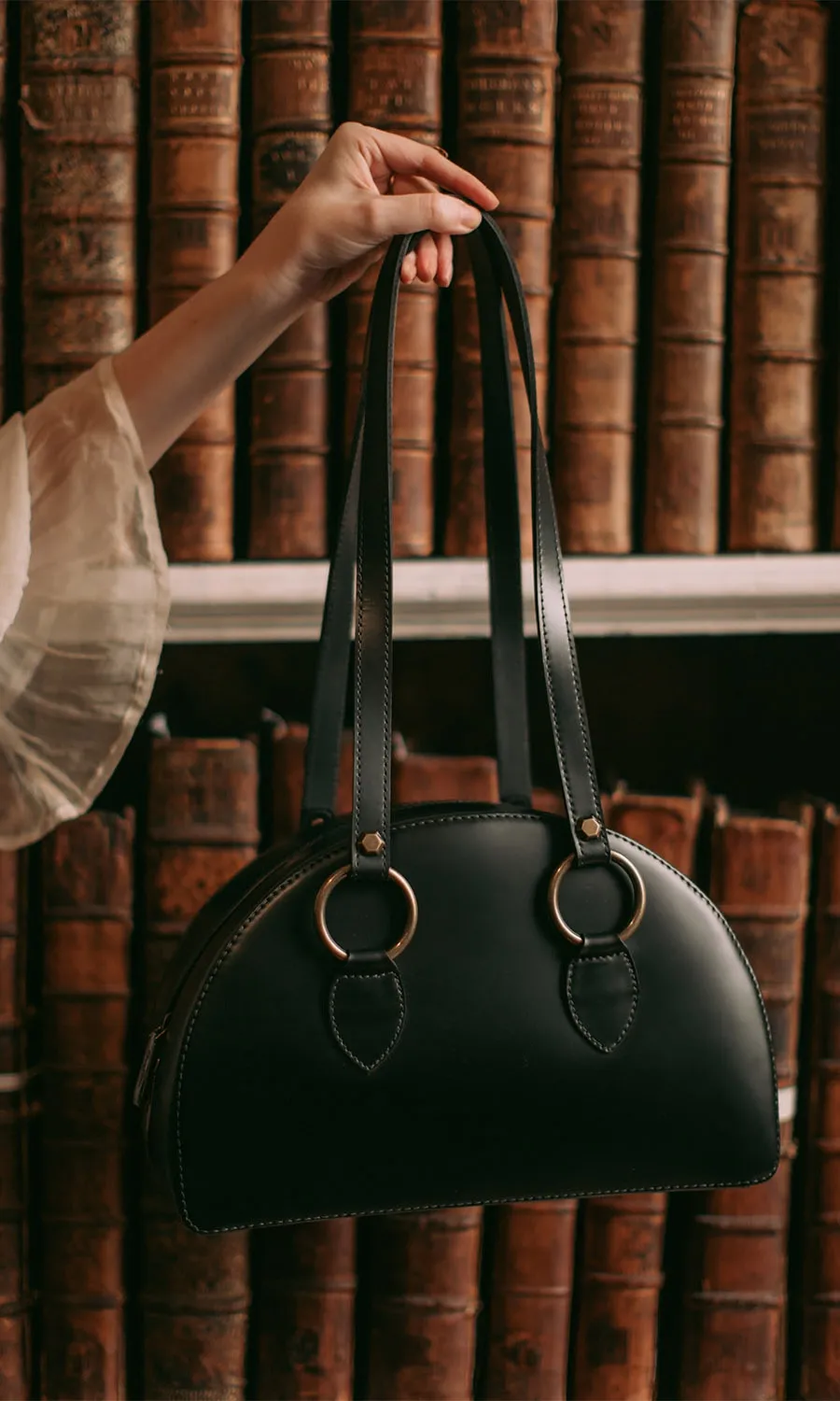 When we began discussing the idea of creating something special together, we knew from the start that it had to be both practical and effortlessly stylish, a piece that moves seamlessly from countryside strolls to city evenings. Crafted with intention and care, the result is a vintage-inspired underarm bag with a sleek half-moon silhouette, made from soft yet structured premium leather. Designed to be as versatile as it is beautiful, it carries a bunch of flowers or a stack of books just as gracefully as it complements a cocktail dress for a night out. From its clean curves to the subtle stitching, every detail speaks of sophistication and quiet confidence — much like Rebecca herself.