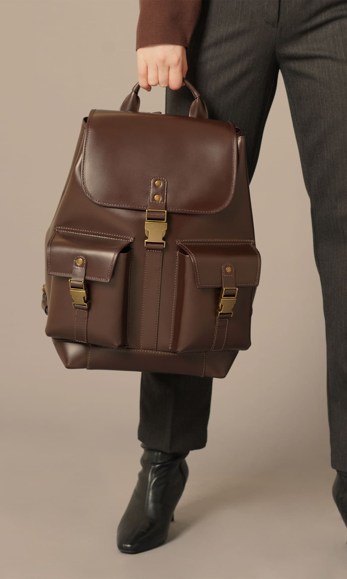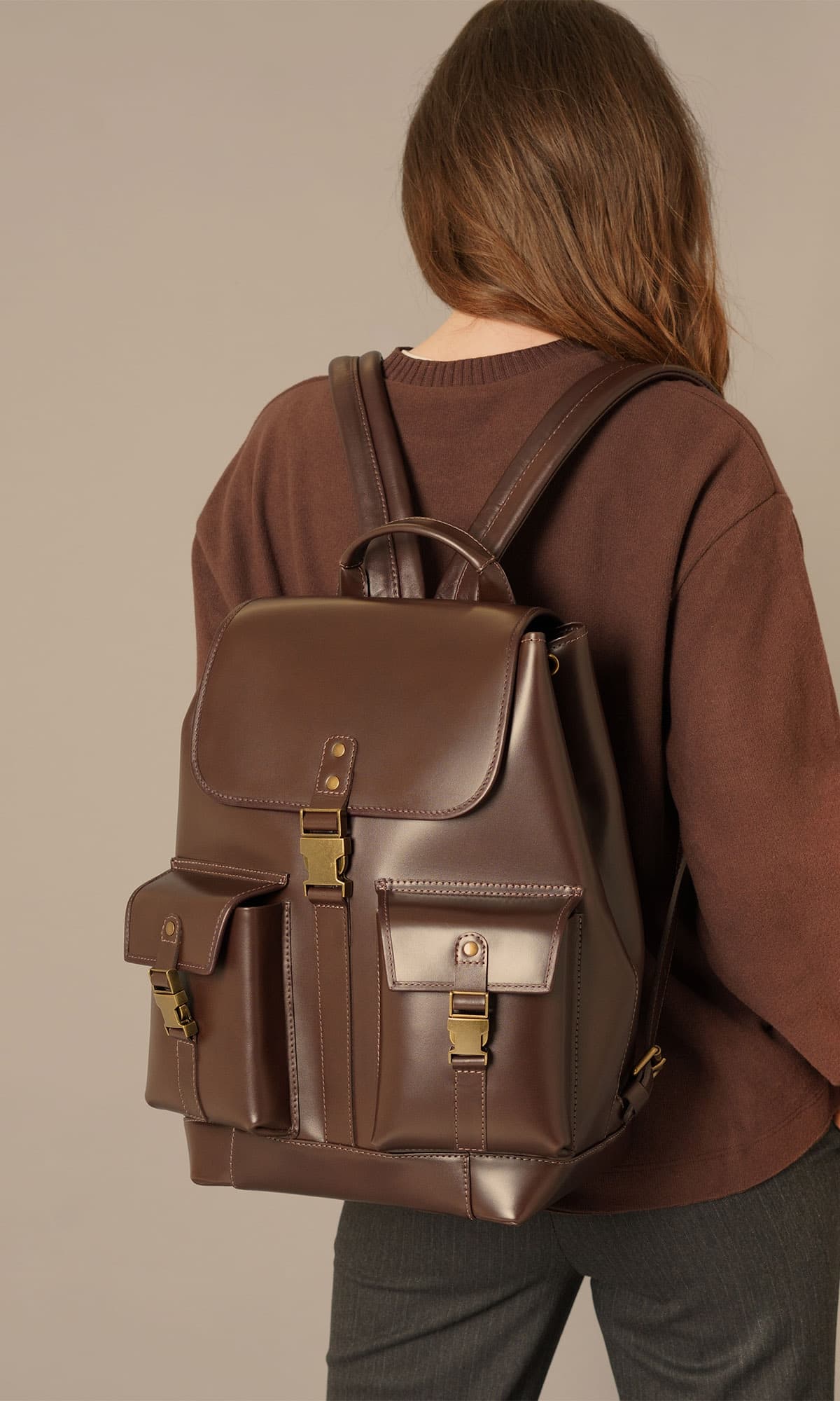 Handmade from our premium leather, Tom is a significant upgrade of our popular San Jose Backpack, which was a core part of our collection for over 9 years. Designed for adventurers who need ample storage, this larger-sized bag offers generous capacity without compromising on appearance. Despite its spacious interior, Tom remains surprisingly lightweight, while its durable construction ensures it withstands the rigours of time and travel. Two front pockets with clip buckles provide quick access to essentials, while a secure rear zip pocket keeps valuables safe and out of sight. The wide, padded shoulder straps reduce pressure, making Tom not just a classic in design but very comfortable and practical for every journey.