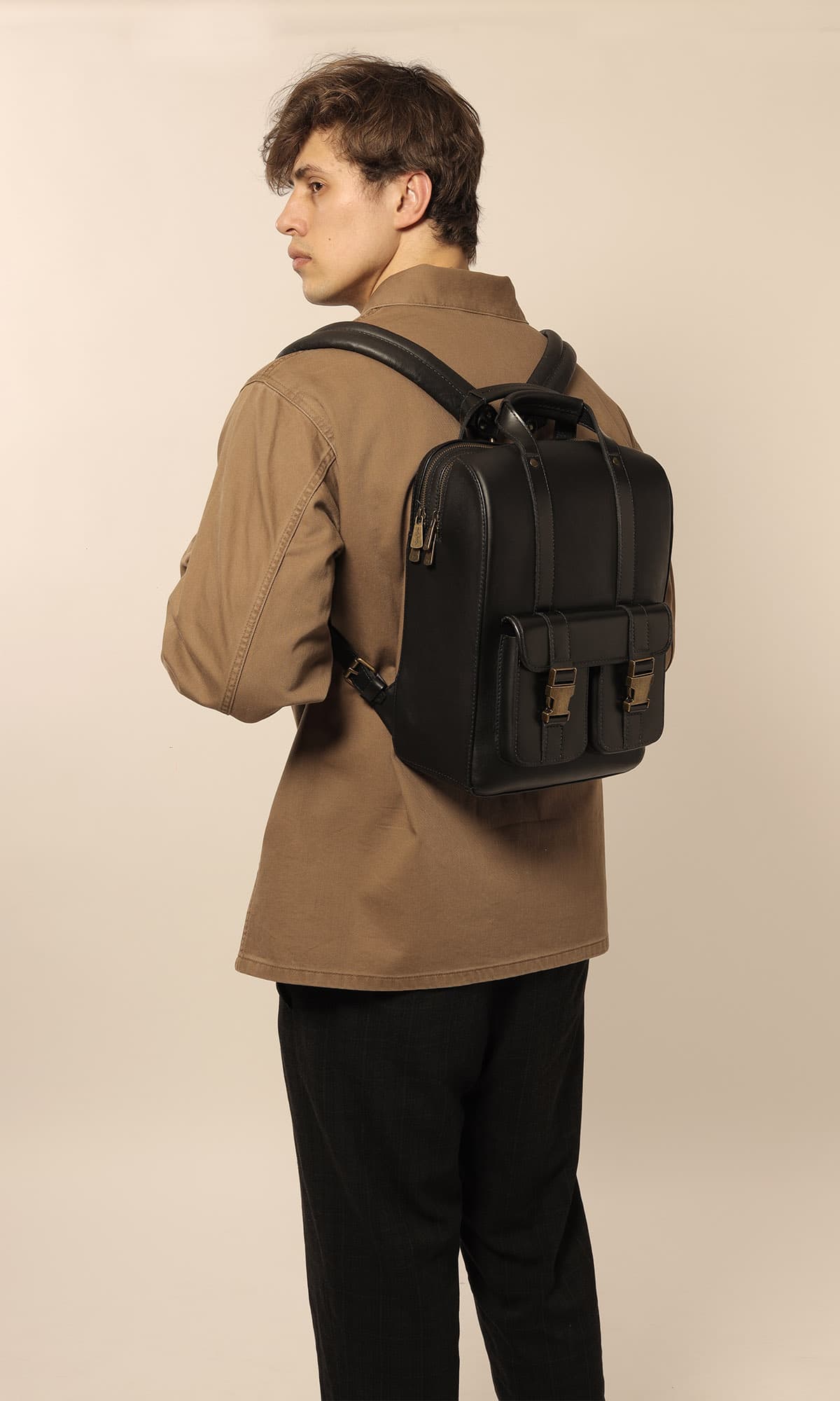 Will is the perfect bridge between vintage charm and contemporary flair. Its sleek design features simple lines and soft matte leather, accentuated by robust brass hardware for a touch of elegance. This remarkable backpack stands out as one of the most modern and distinctive additions to Beara Beara. Equipped with two large YKK zips and a dedicated laptop section, it effortlessly caters to the needs of the modern individual. The Will embodies a subtle sense of style, perfectly accommodated to the demands of bustling city life.