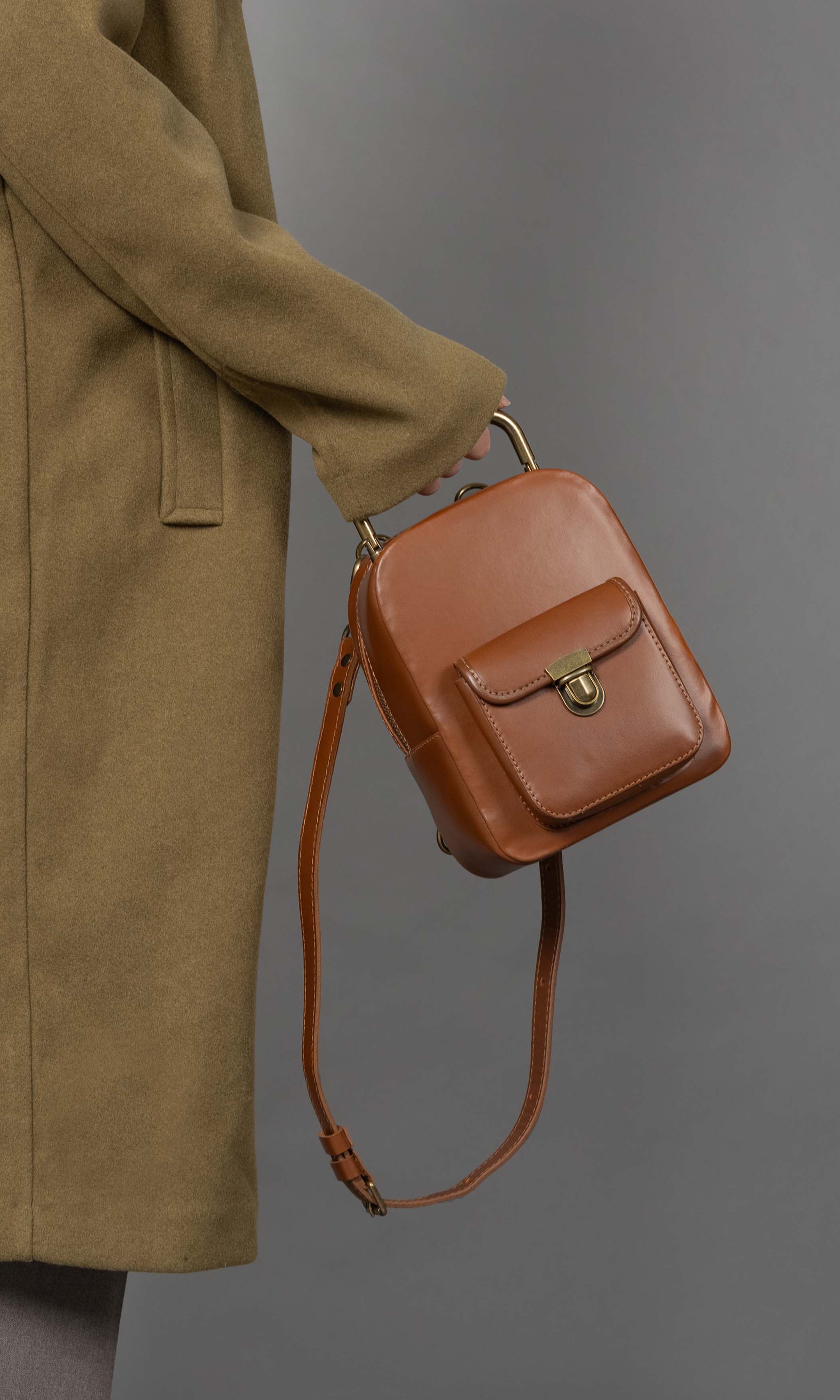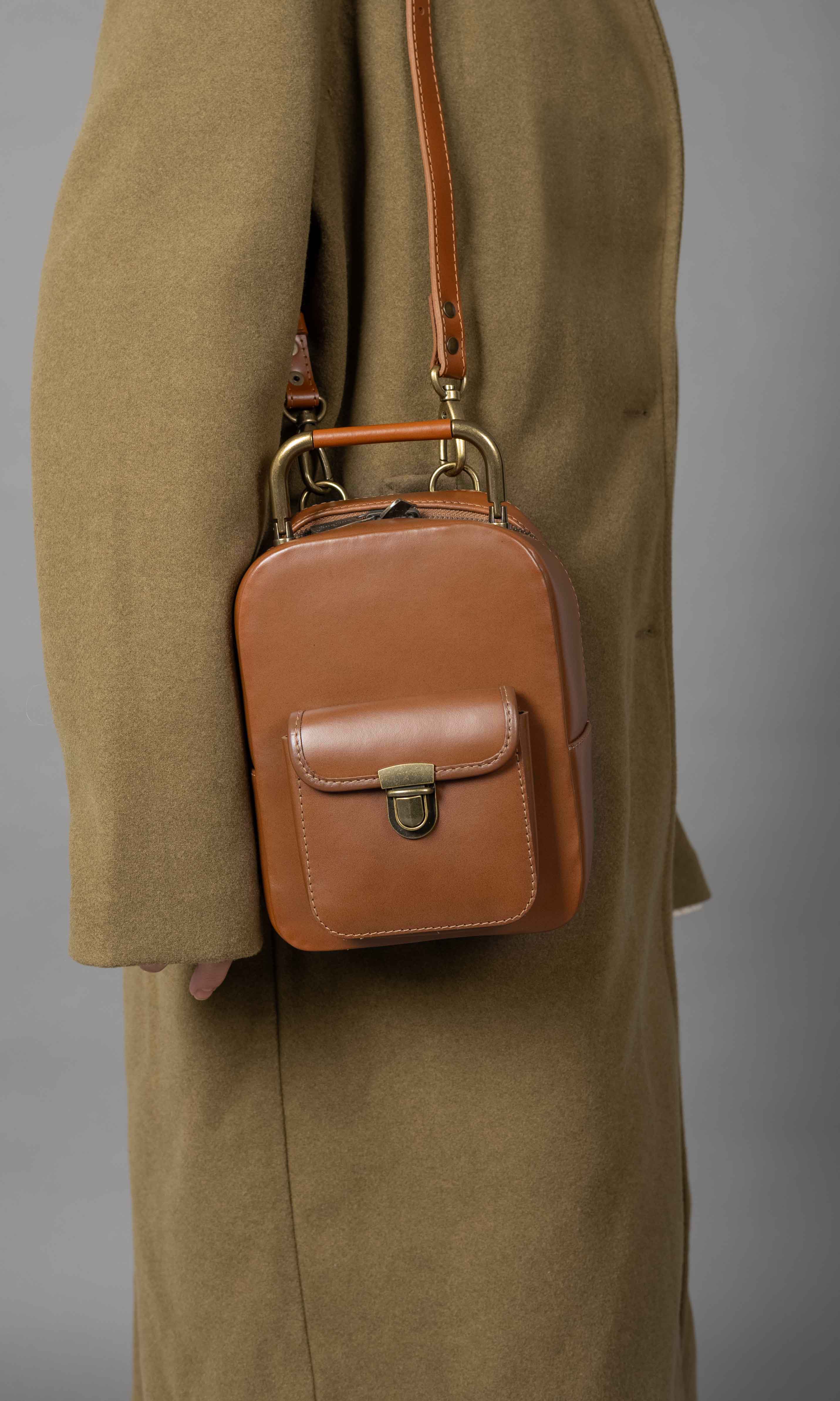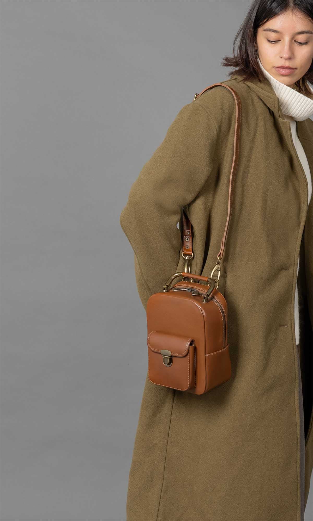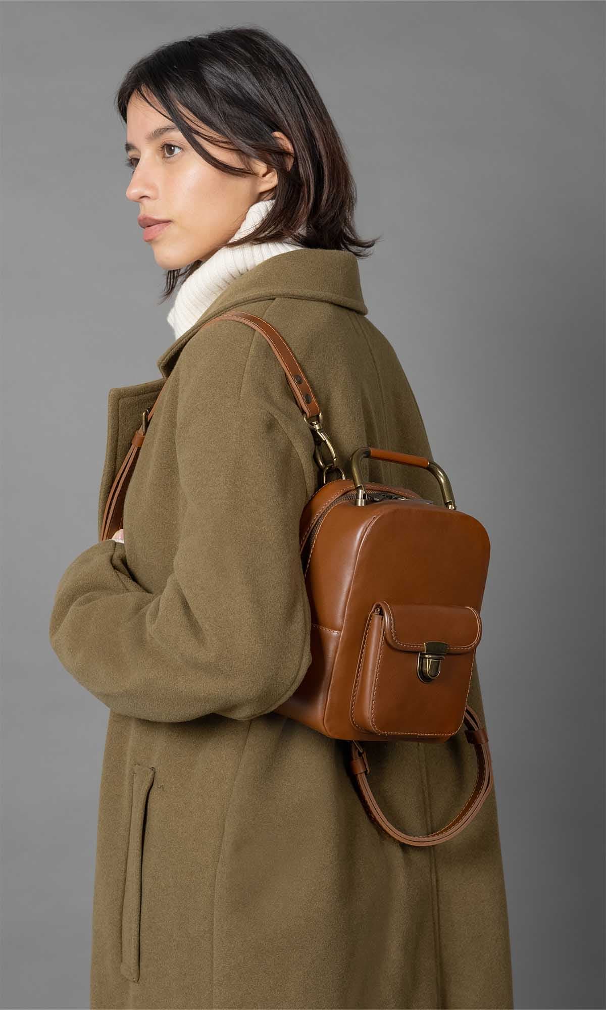 The adorable Yoyo backpack/handbag is skillfully crafted from smooth and soft natural caramel leather. Its simple yet elegant design is accentuated by a strong brass zip, providing easy access to the main compartment. Adding a touch of timeless charm, an antique brass top handle graces the top. Versatility is the name of the game with Yoyo, as it can be carried by the top handle, worn straight from the shoulder with adjustable padded straps, or as a crossbody bag. The perfect companion for everyday adventures, this small backpack/handbag offers both style and functionality. Inside, you’ll find a soft cotton inner lining that treats your accessories with care.