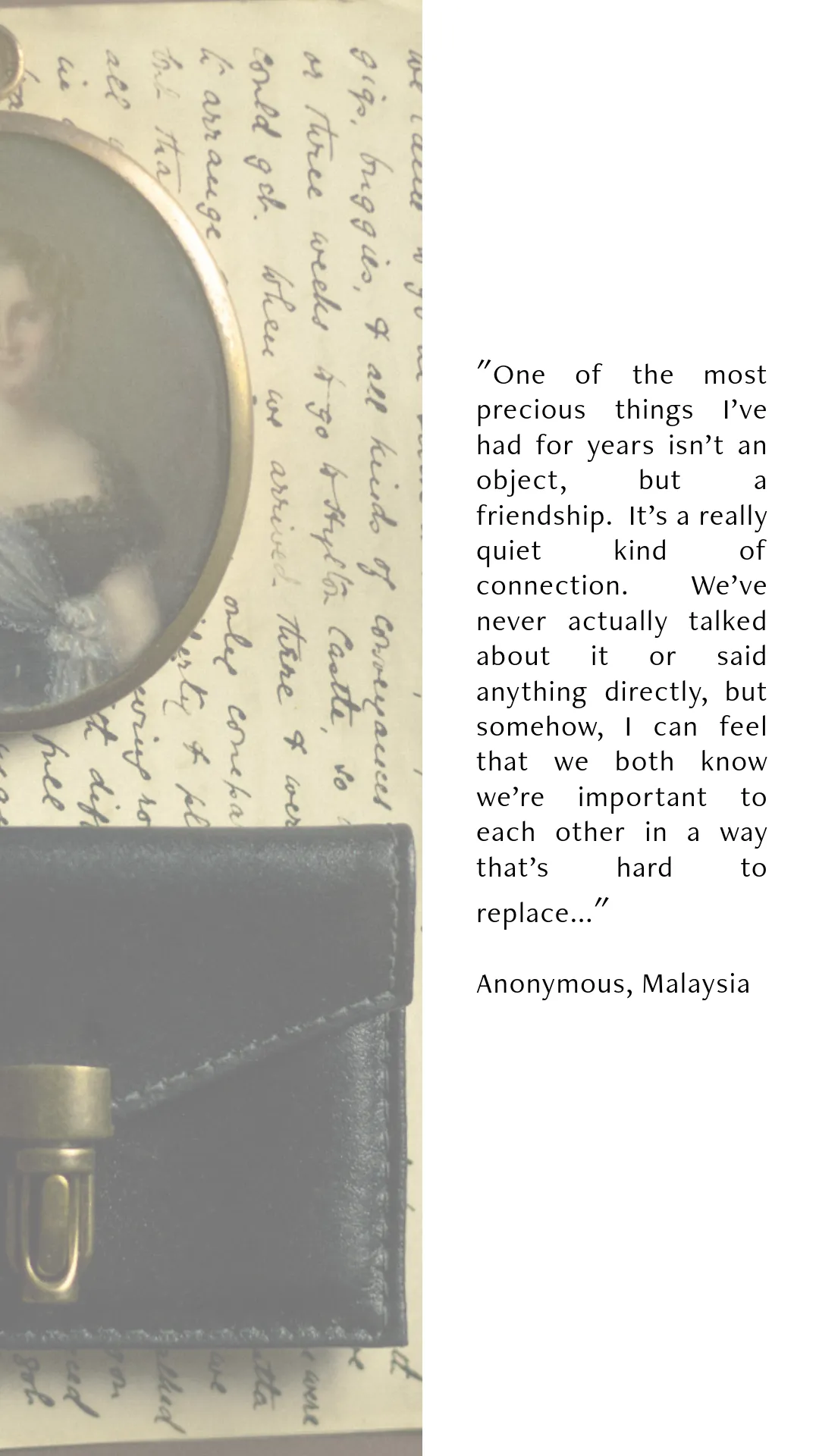 As a part of our recent giveaway we invited everyone to tell us a short story about something precious that accompanied them through life and why it's so special to them. Some were nostalgic, some deeply personal, and all are beautiful reminders of how meaningful the things we carry can be.
