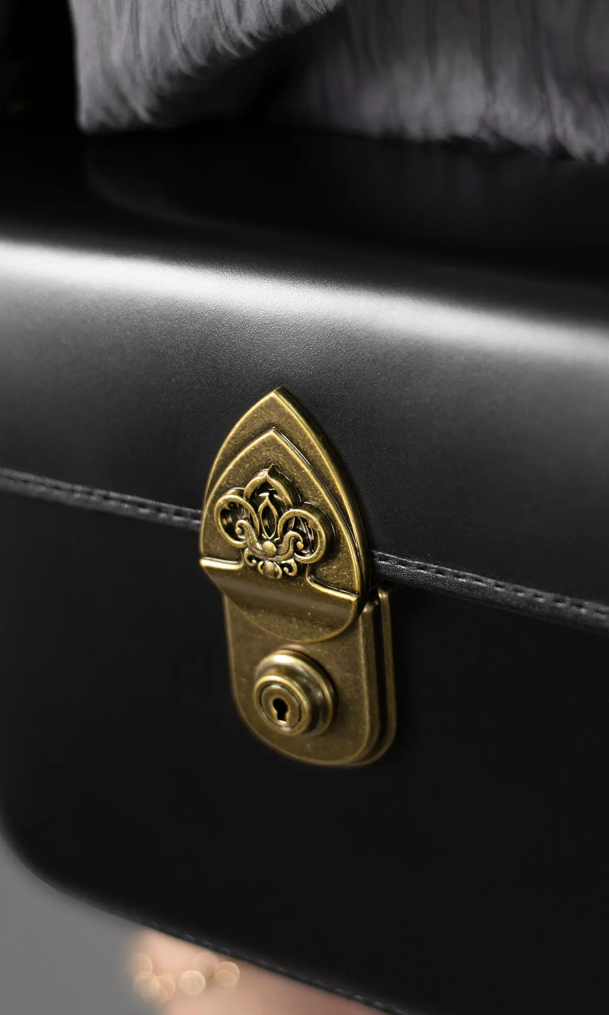 Drawing inspiration from the intricate beauty of Gothic architecture, the design echoes the graceful geometry of pointed arches and delicate tracery. The distinctive clip closure, reminiscent of a grand cathedral door, adds an air of mystique and sophistication — a true reflection of our dedication to originality and refined craftsmanship.