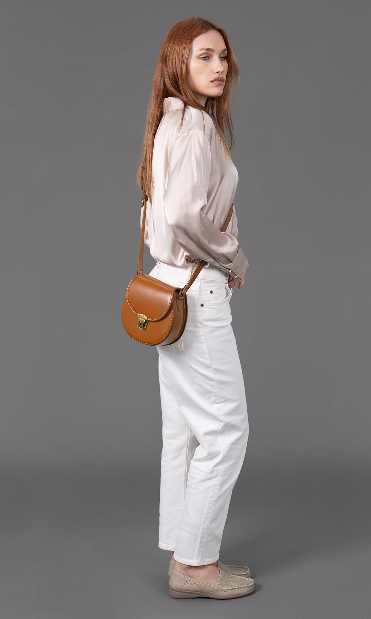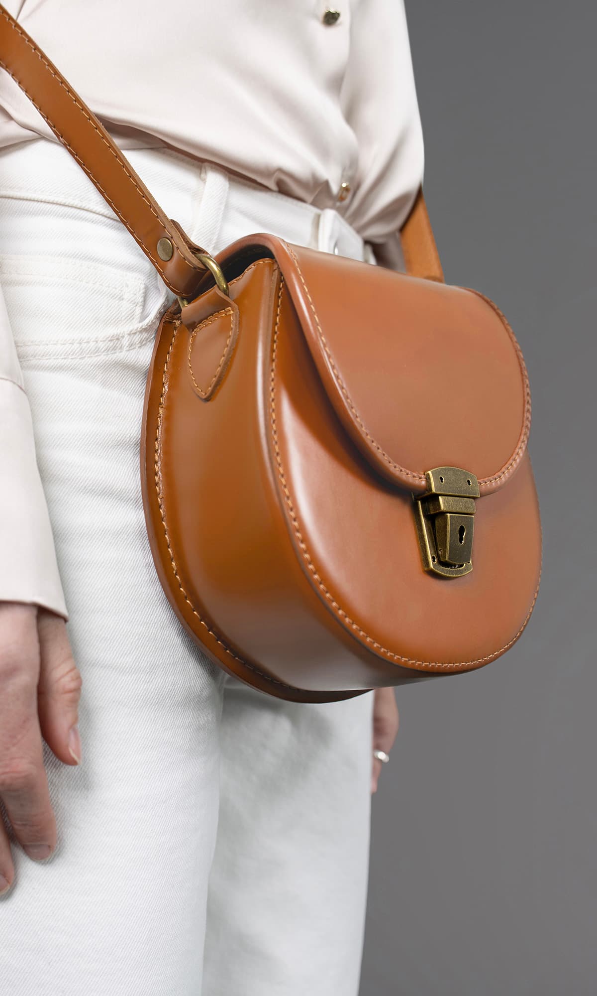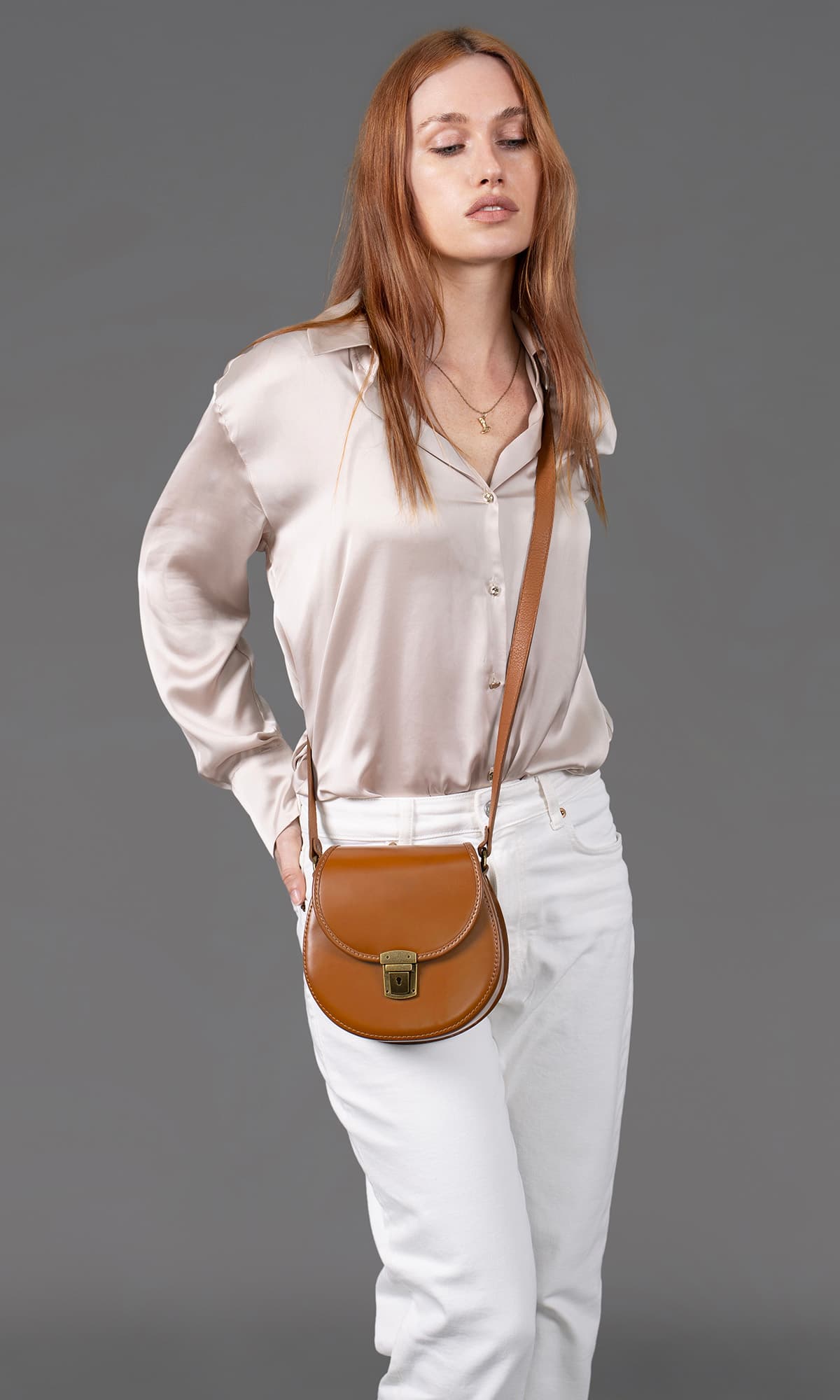 The Eden exudes elegance, charm, and timeless appeal, inspired by the classic British saddle bag. Meticulously crafted from sturdy natural leather, this petite crossbody handbag blends refined style with enduring functionality.