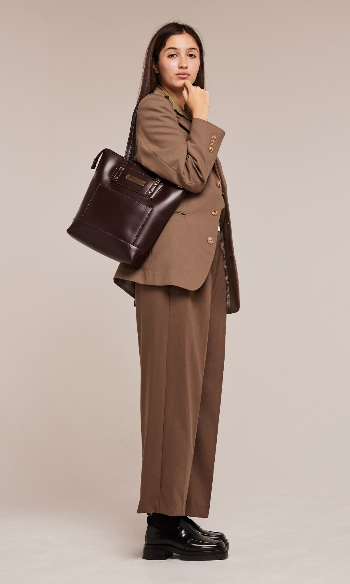 Introducing the Judi Small, a luxurious update on our popular Judi tote, showcasing our exceptional leather quality. This classic tote is designed to withstand the rigors of busy city life. It features several secure compartments inside and out, ensuring you can carry all your basics with ease. The Judi Small can accommodate up to 13-inch laptops, catering to your modern needs.