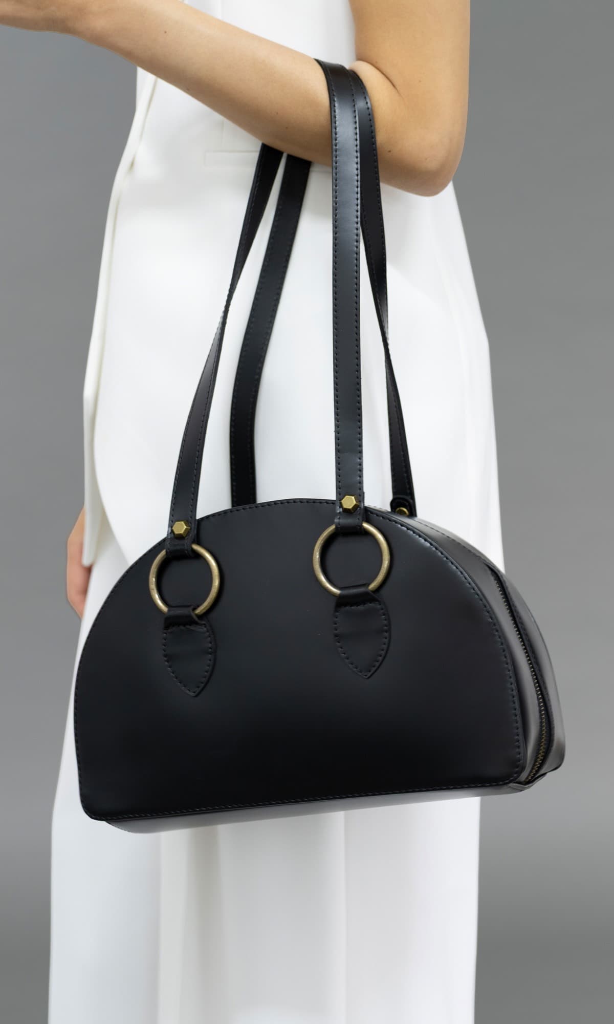 Handcrafted from thick cow leather, Rebecca has a supple feel while remaining durable enough to age beautifully over time. The deep black finish gives this women’s leather shoulder bag a classic, versatile look, while brass-finish hardware adds warmth and character. Designed to sit comfortably under the arm, it works just as easily for daily wear as it does for travel, weekends or city days.