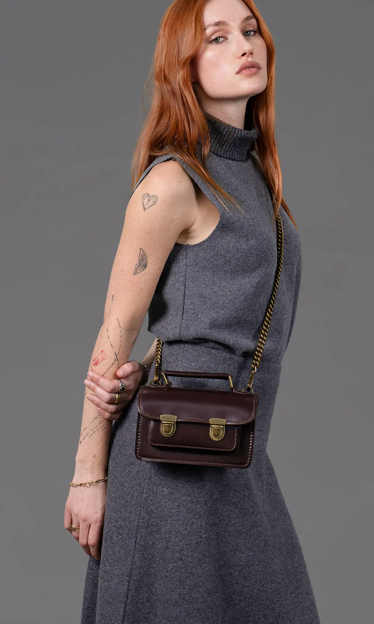 The Santa Anna Mini embodies refined elegance in a beautifully petite silhouette, crafted from smooth natural leather. Brass-toned hardware adds a sophisticated touch, offering a striking contrast against the matte finish for a timeless, understated look.