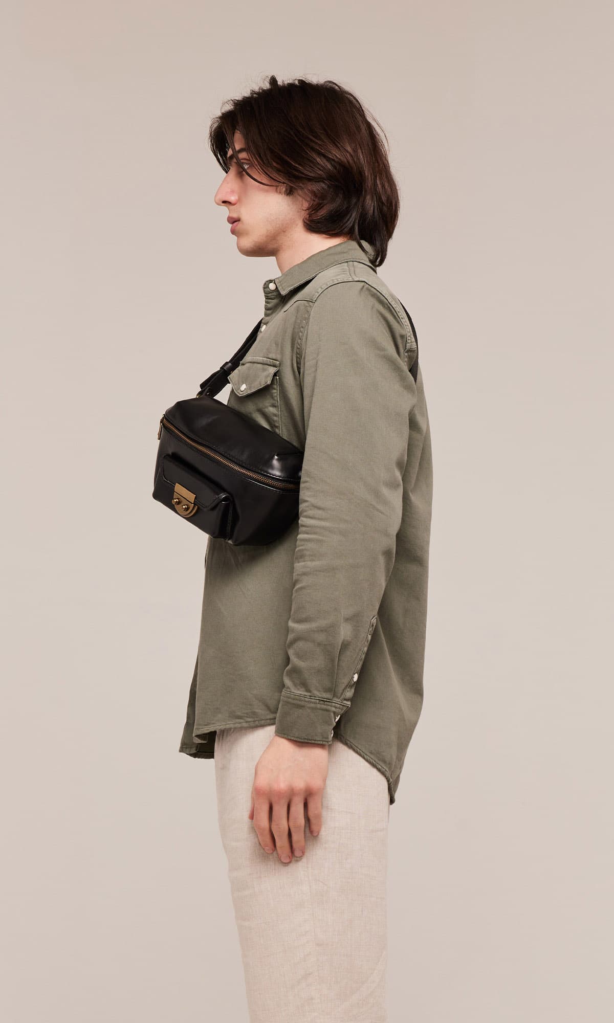 Introducing the Kingsley — a stylish, versatile crossbody bag that redefines everyday convenience. Handmade from soft natural black leather, it combines comfort with contemporary design, making it perfect for walking the dog, cycling, or travel.