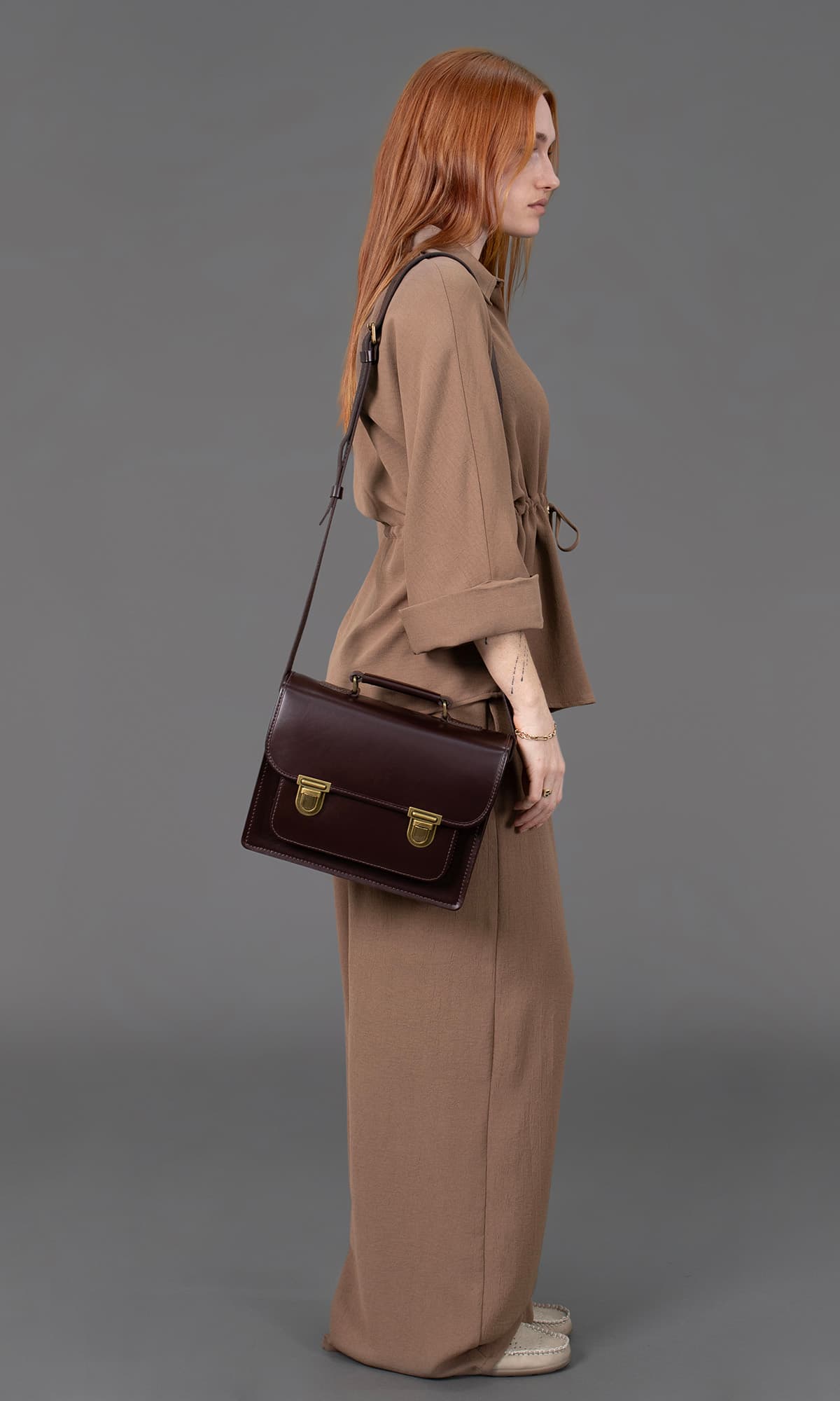 Our most popular satchel, but in a small size. This is your everyday cute bag that can be carried by hand or on your shoulder and will compliment any style, for any occasion. Our extra small Santa Anna is handmade from robust natural brown leather with a small front pocket, a rear zip pocket, and eye-catching antique brass push clip closures.